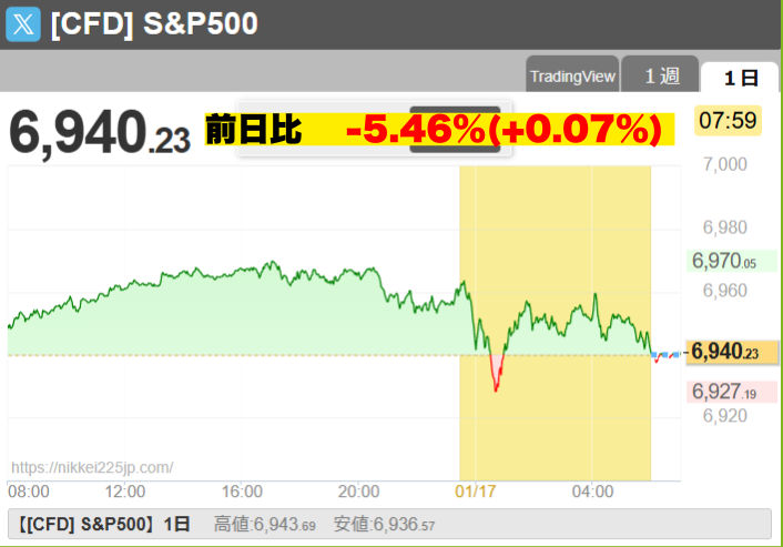 - S&P500種株価指数:6940.01(前日比-0.06%)