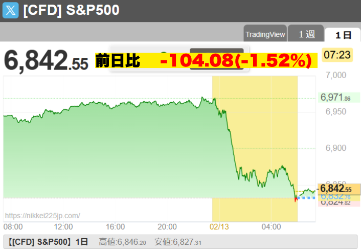 12日の米株式市場では、これまでの「AIブーム」に変化が生じています。S&P500種株価指数は1.57%下落し、ハイテク株比率の高いナスダック総合指数は2.03%の大幅安となりました。