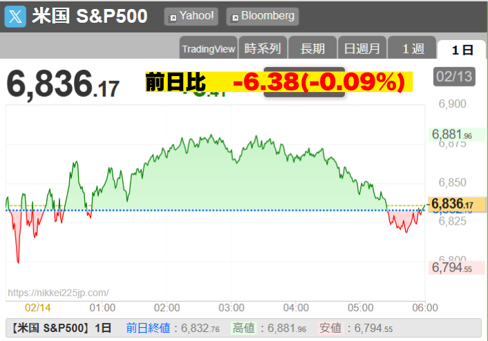 S&P500種株価指数はほぼ横ばいで終了したものの、ナスダック総合指数は小幅に下落しています。