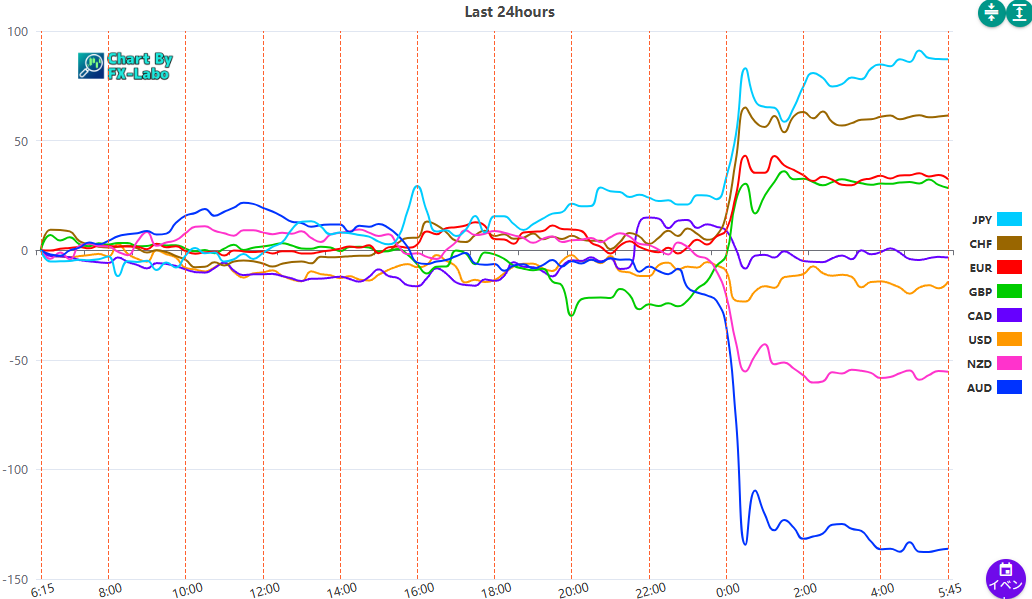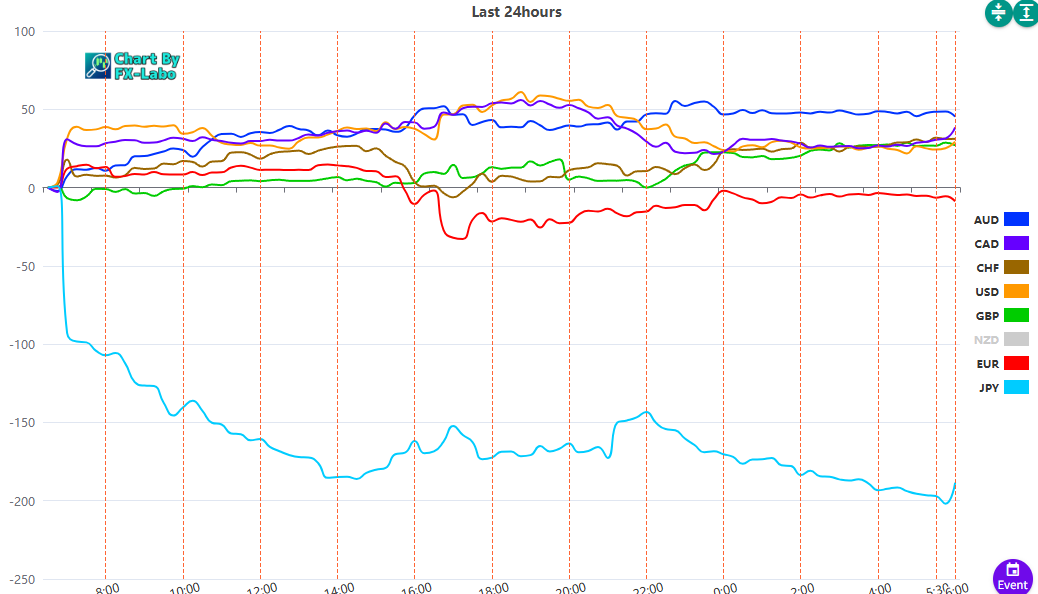安全資産とされる円が買い戻され、ドル円は153円手前から151円台まで急下落。