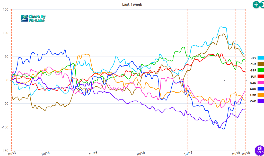結果として、安全資産とされる円やスイスフランが買われ、ドルは週間を通じて下落基調を強める一週間となりました。
