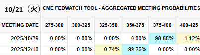 FRBはすでに9月の会合で、政策金利(FF金利)を4〜4.25%へ引き下げました。