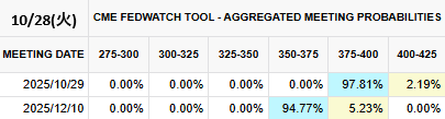 市場ではFRBが今週のFOMC(28~29日)で0.25%の利下げを行うとの見方が強まっており、金融緩和が株式相場を支えるとの期待が広がっています。