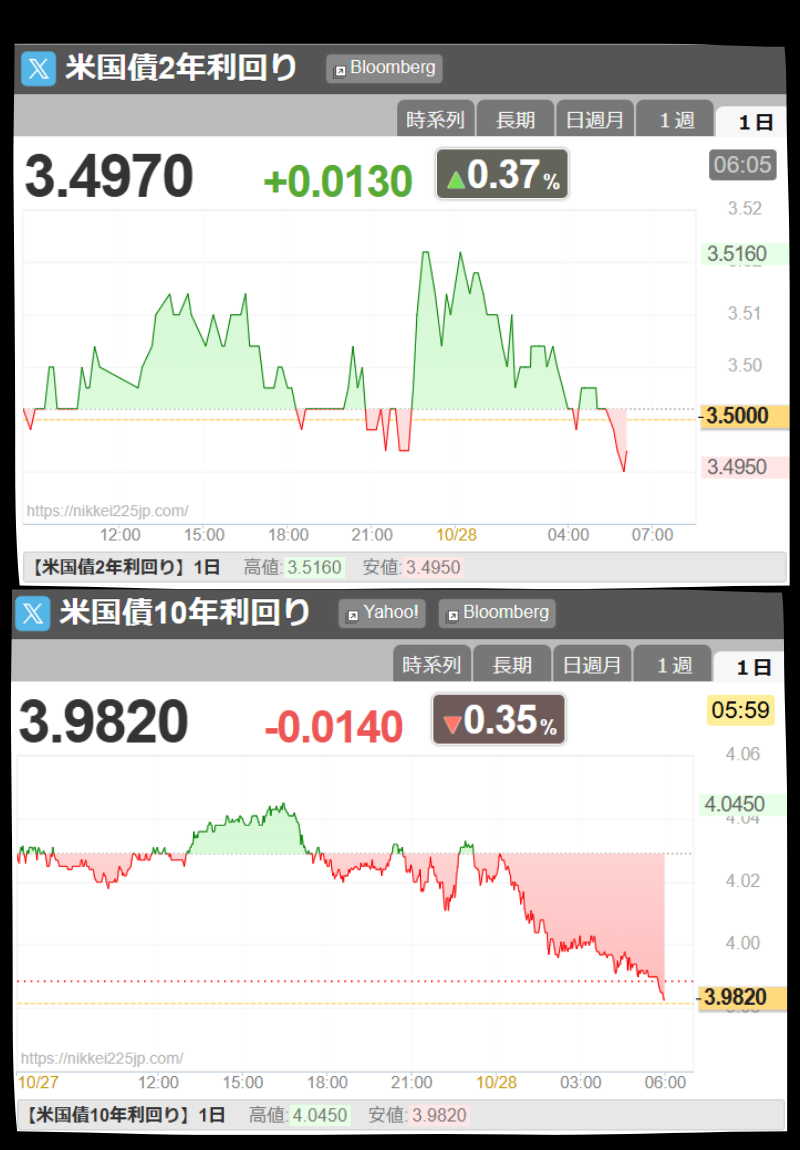 特に2年債利回りは一時3.52%近くまで上昇し、短期ゾーンでの売りが目立ちました。