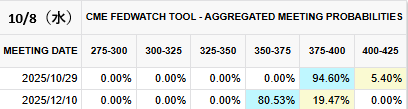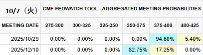 このようにFRB内部でも温度差はあるものの、市場では今月のFOMC(連邦公開市場委員会)で追加利下げが決定されるとの観測が引き続き優勢です。