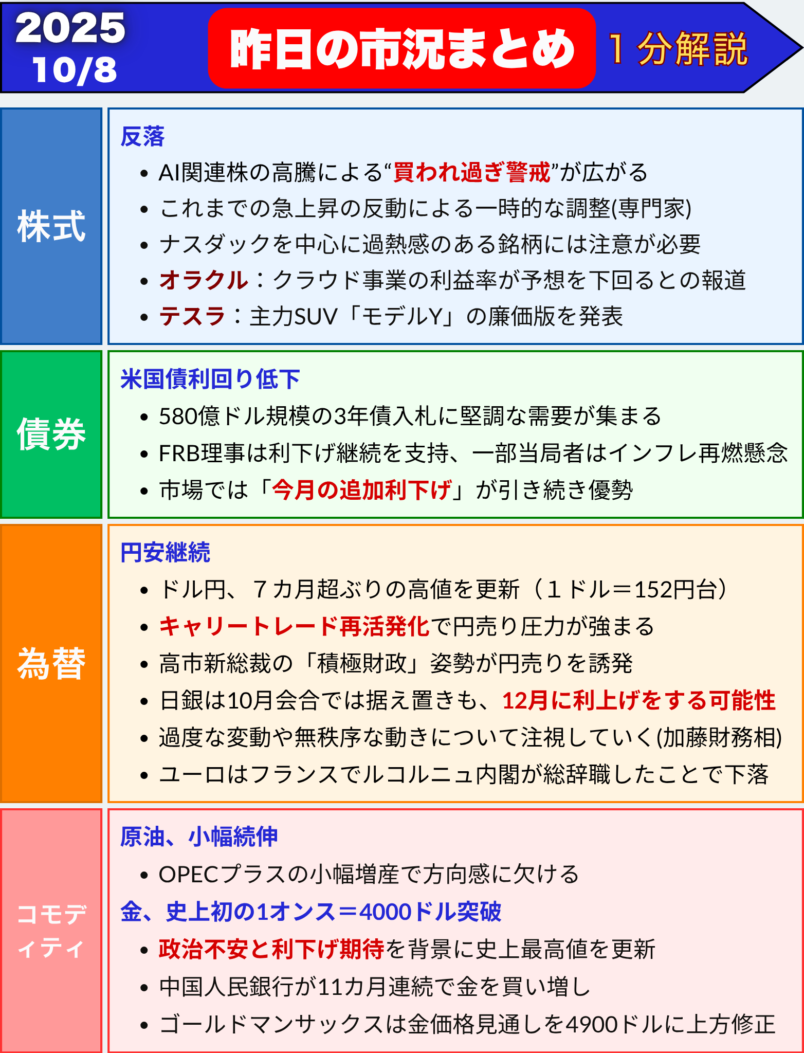 - AI関連株の高騰による“買われ過ぎ警戒”が広がる
