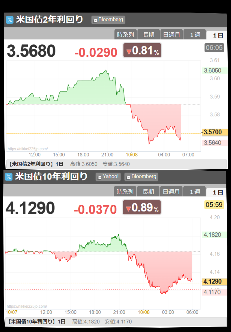 米国債相場は上昇し、主要な利回りがそろって低下しました。背景には、堅調な3年債入札と、FRB(米連邦準備制度理事会)による利下げ観測の継続があります。