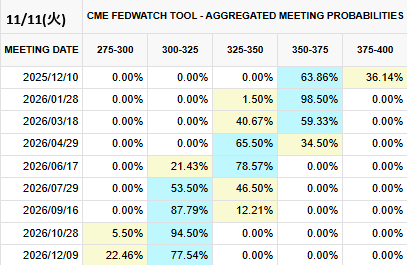 米経済データ(雇用・インフレ)発表の再開が見込まれることで、市場では12月利下げ観測が再び強まっています。