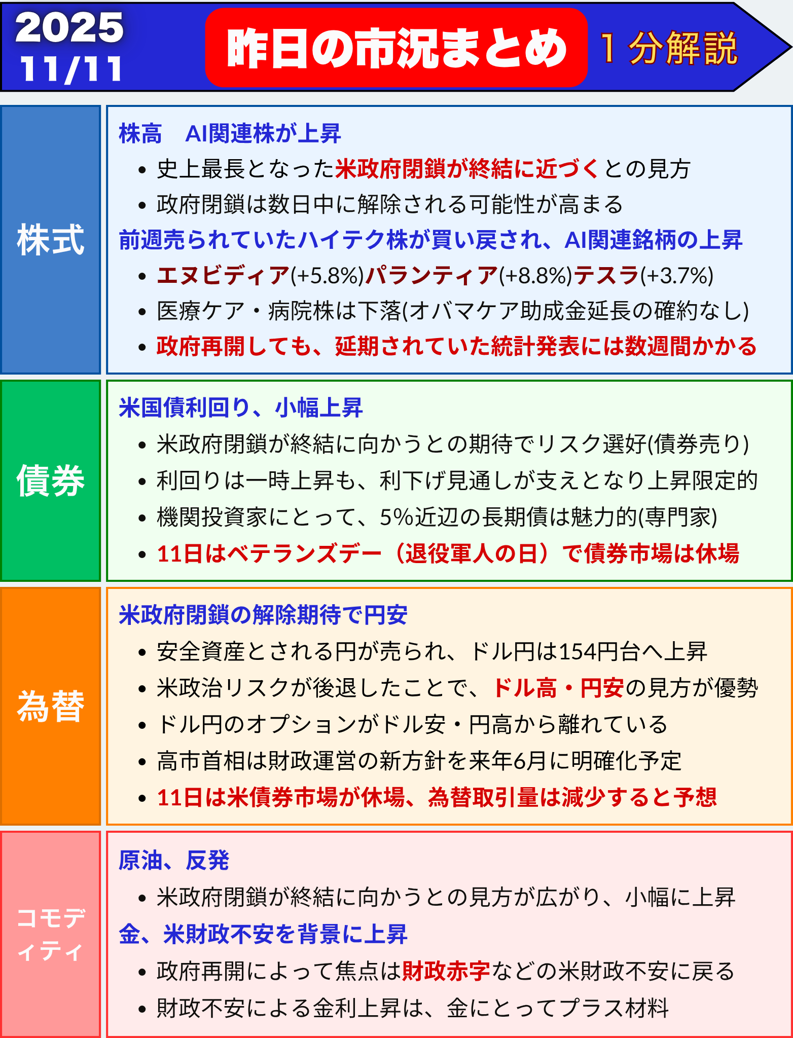 『米国市場まるわかり|株式・債券・為替・商品先物を毎日要約』・2025/11/11