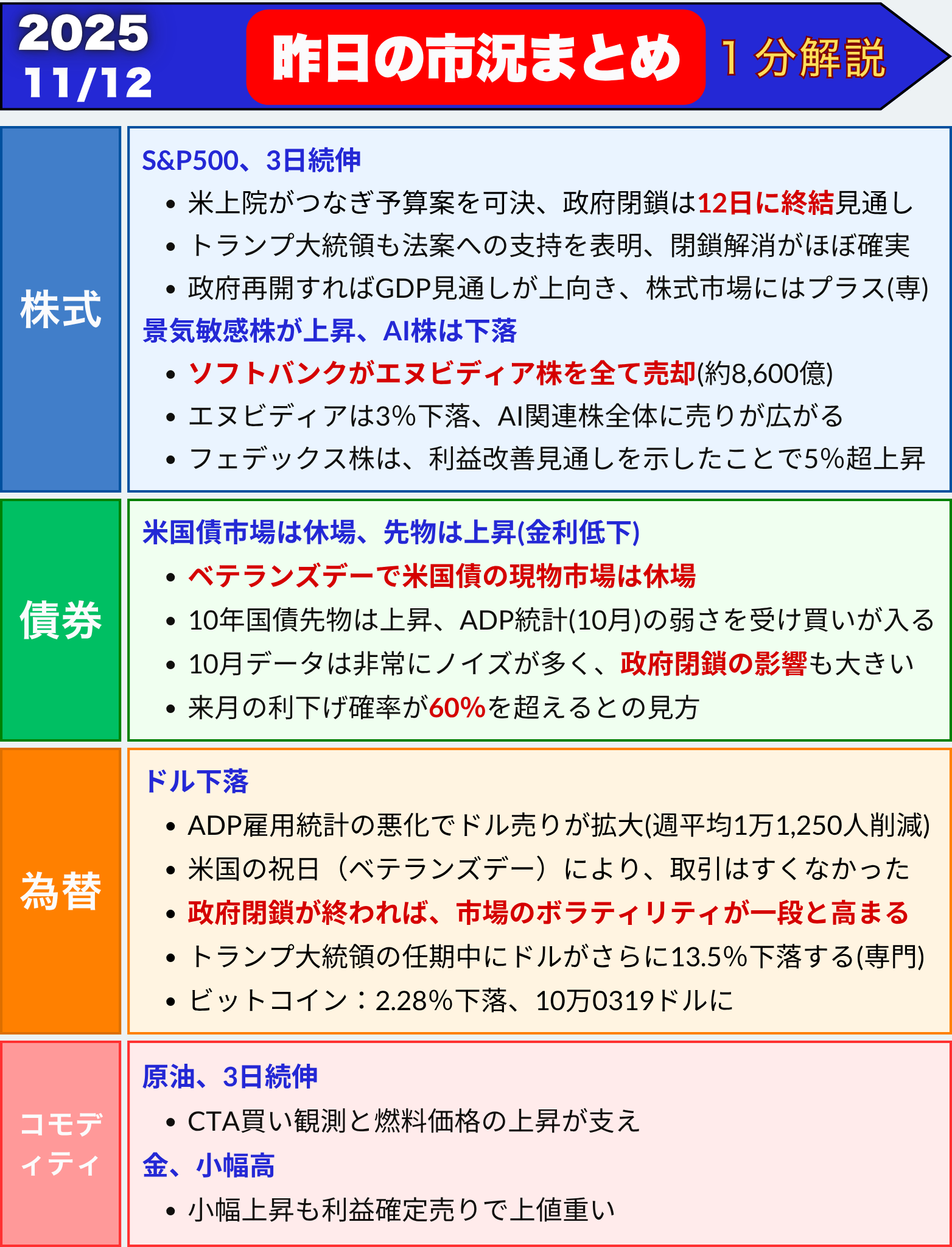 昨日の市況まとめ 1分解説