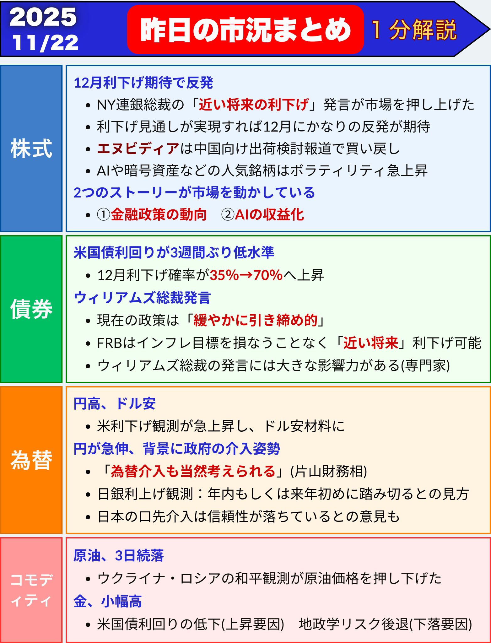- 22 米FRBの“12月利下げ観測”がドル安を後押し