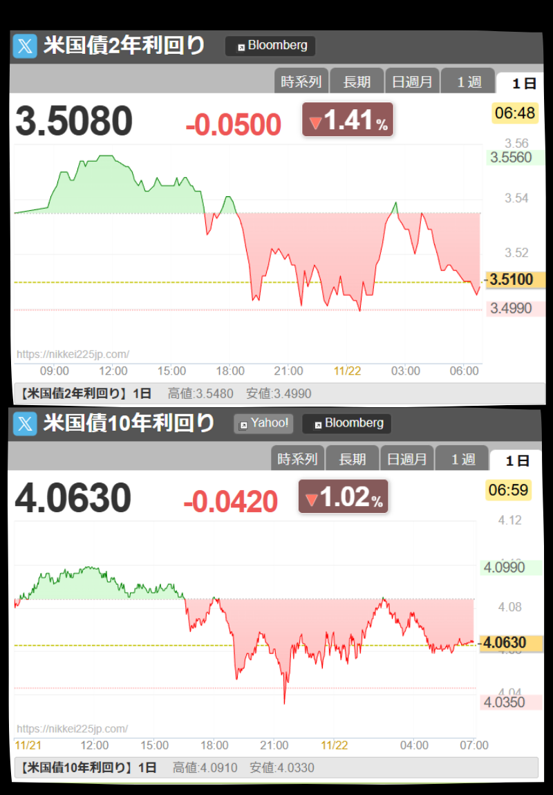 - 13 米国債利回りが3週間ぶり低水準に低下:FRB当局者発言で12月利下げ観測が急拡大