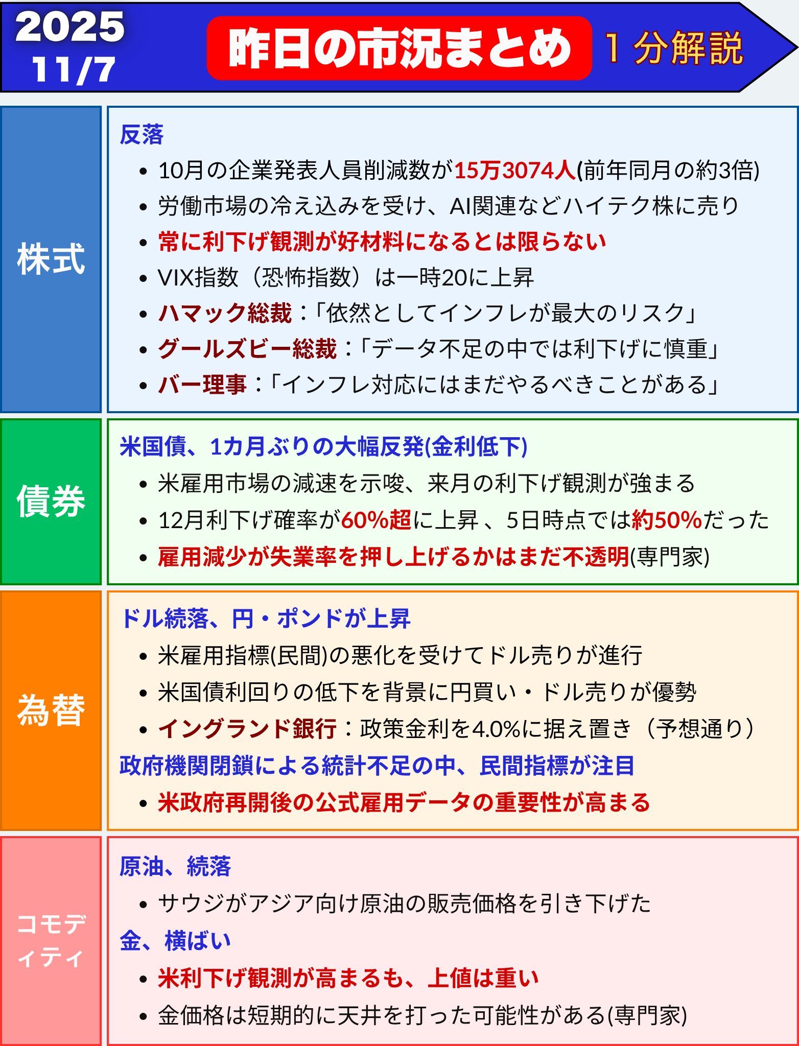 『米国市場まるわかり|株式・債券・為替・商品先物を毎日要約』・2025/11/7
