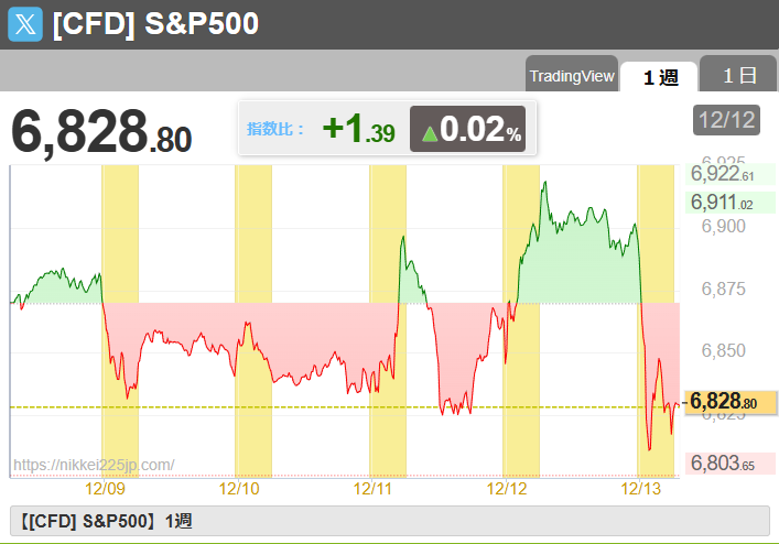 米国株式一週間の動き(S&P500)
