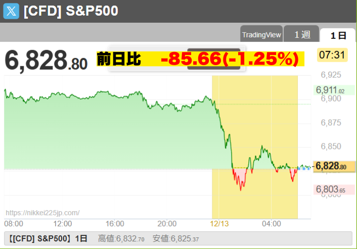 • 詳細: 前日のオラクルに続き、ブロードコムの売上高見通しが市場期待に届かず急落。AI関連銘柄への利益確定売りが加速し、週末を前にリスク回避の動きが強まった