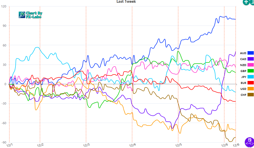 一方で米国側も12月利下げ期待が高まり、ドル全体が軟調なスタートとなりました