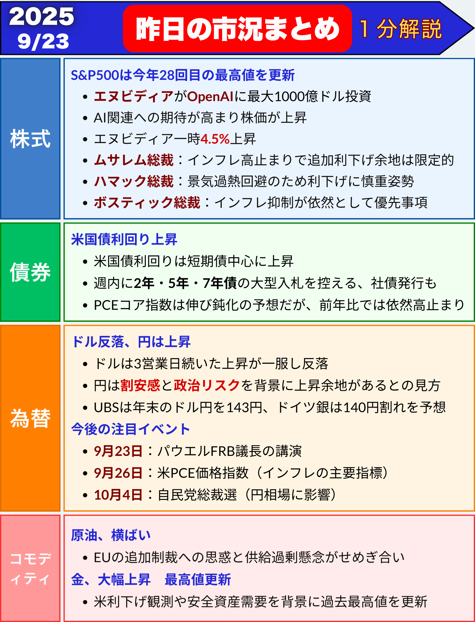 昨日の市況まとめ 1分解説