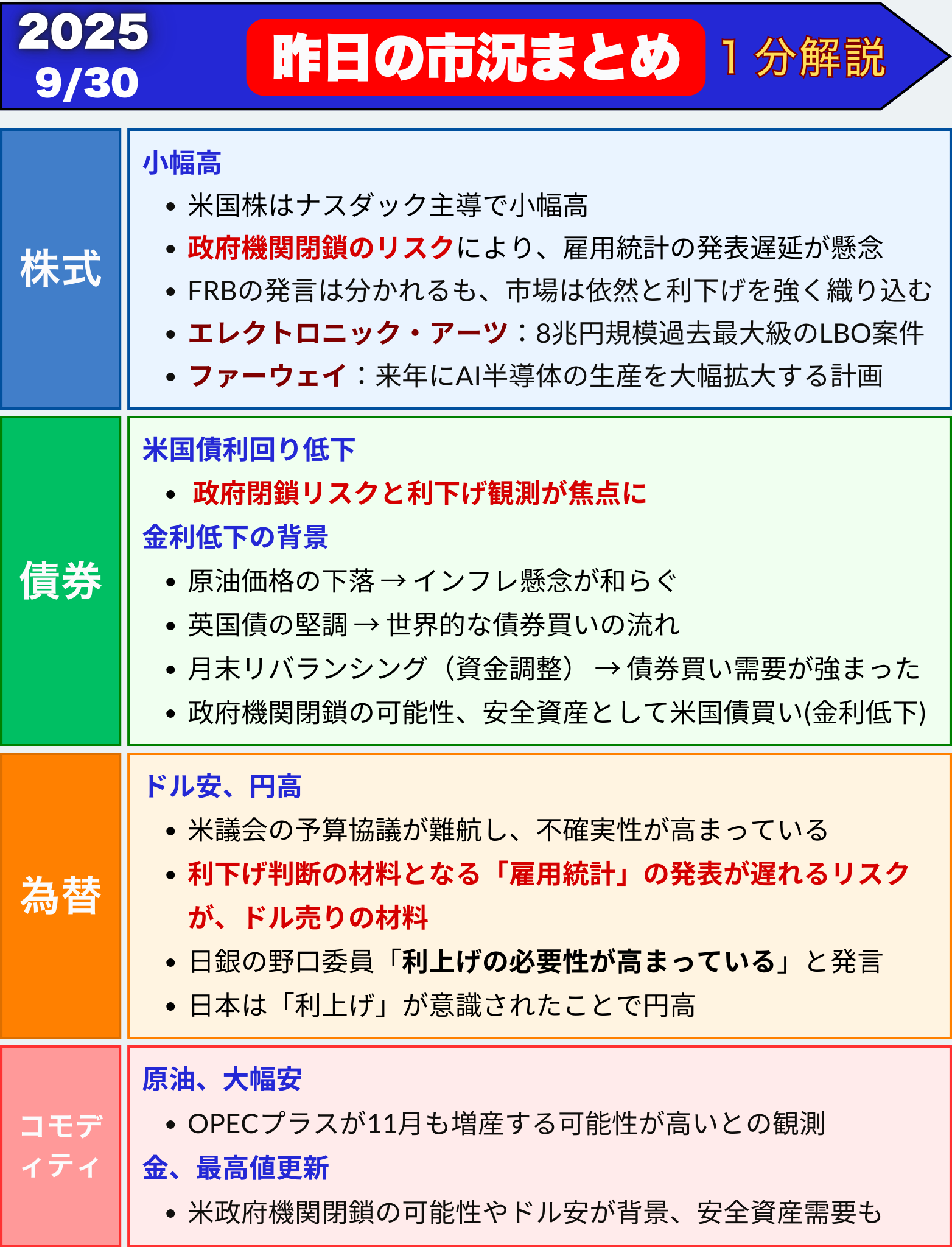昨日の市況まとめ 1分解説